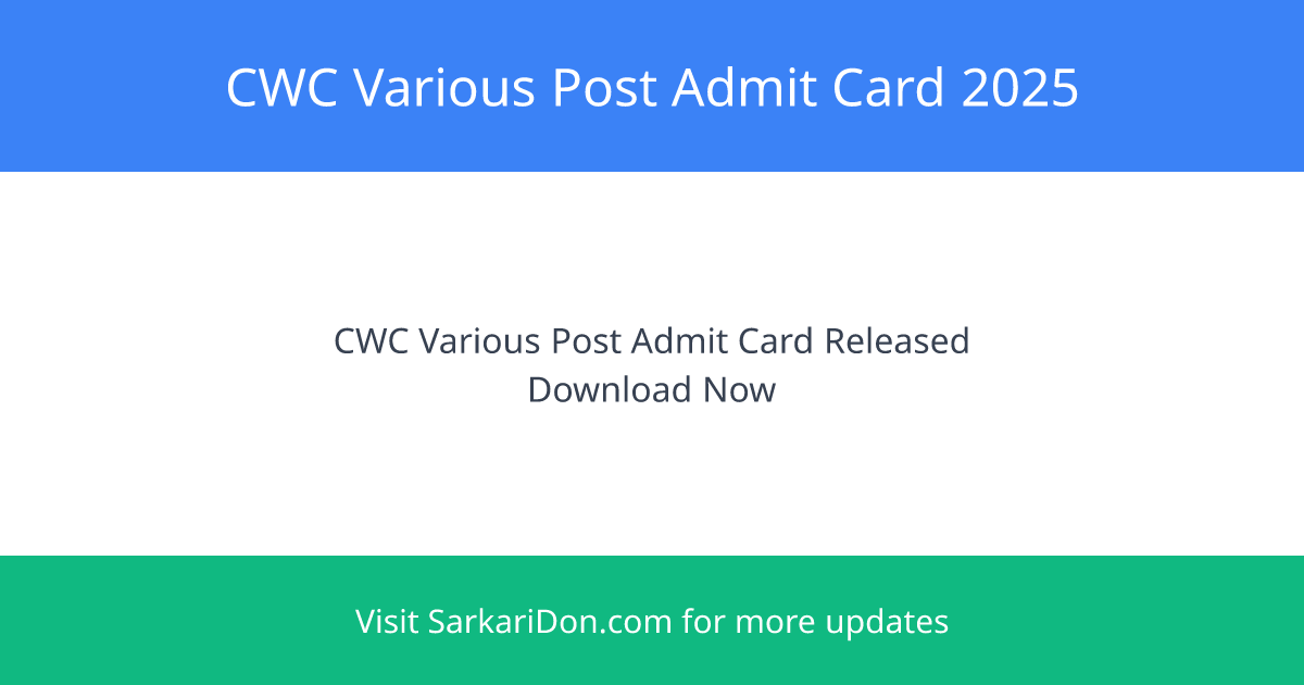 Admit Card Released! Download your admit card for the CWC Various Posts 2025 exam from the official link below.
