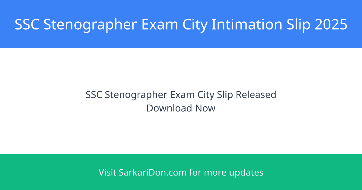 City Intimation Slip Released for SSC Stenographer Exam 2025