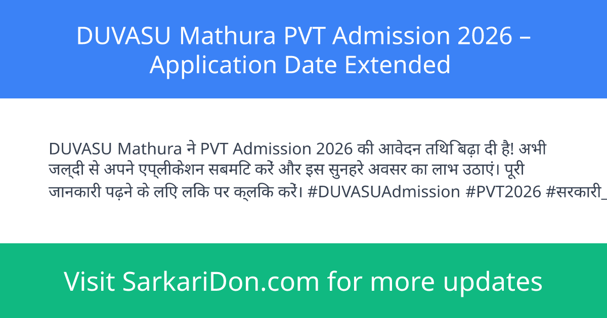 ๐ข Admission Open: DUVASU Mathura PVT Online Form 2026 Extended