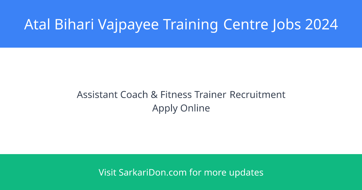 The Atal Bihari Vajpayee Training Centre for Disability Sports, located in Gwalior, invites applications from eligible candidates for various contract-based positions. This is an excellent opportunity for individuals passionate about sports and empowerment of persons with disabilities.