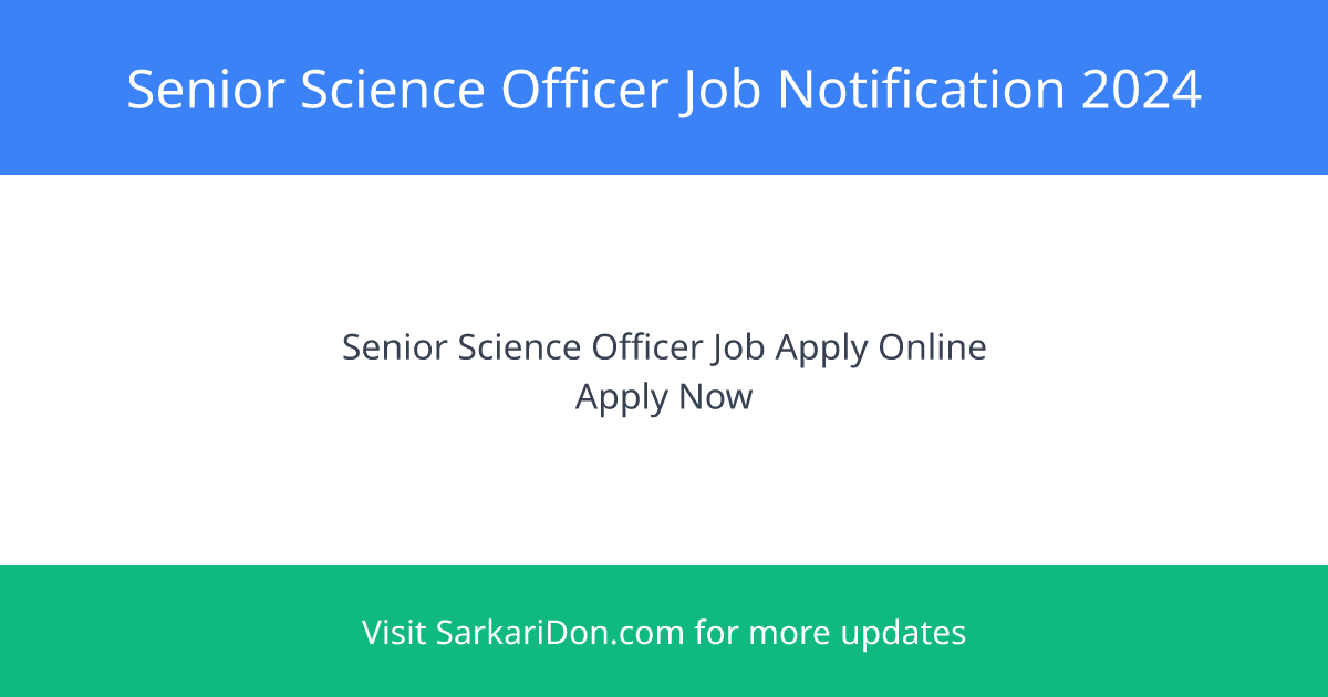 Exciting Career Opportunity: Senior Science Officer Positions Available - Direct Download Link
