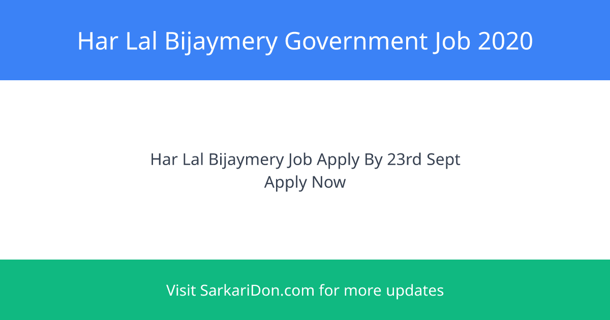 Exciting Government Job Announcement: Har Lal Bijaymery – Apply by 23rd September 2020