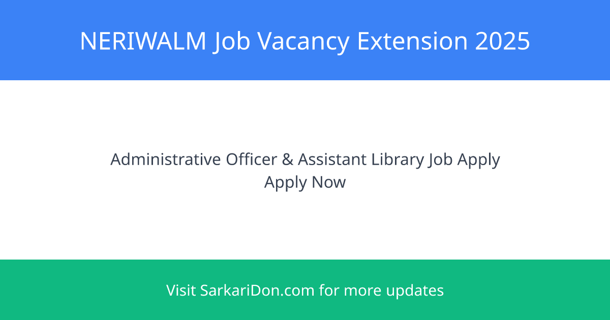 The North Eastern Regional Institute of Water and Land Management (NERIWALM) has announced an extension for applications regarding two important positions: Administrative Officer and Assistant Library & Information Officer. This is a golden opportunity for those looking for sarkari naukri in a prestigious government institution.