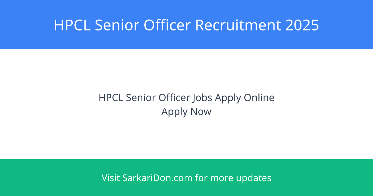Hindustan Petroleum Corporation Limited (HPCL) has announced recruitment for various Senior Officer positions and Assistant Manager roles. This recruitment drive is significant for candidates seeking government jobs in engineering and research fields.