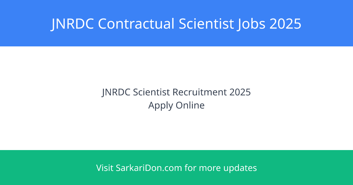 Exciting Job Opportunity at JNRDC: Contractual Scientists Positions Open