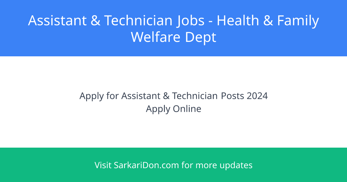 Explore Assistant and Technician Careers in Health & Family Welfare Department