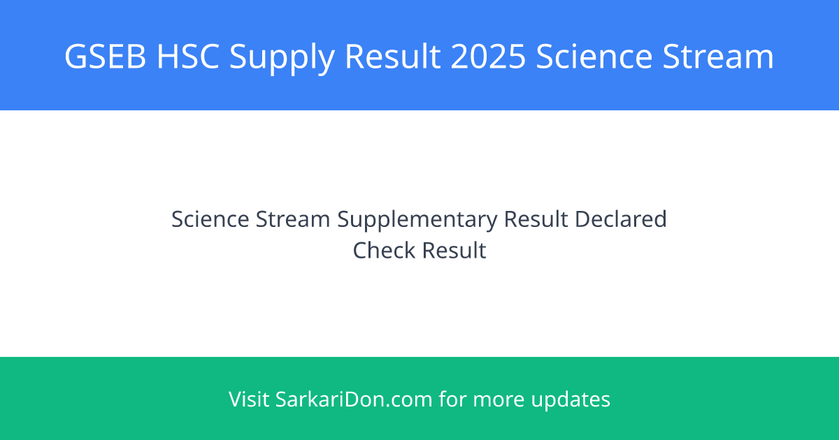 The Gujarat Secondary and Higher Secondary Education Board (GSEB) declared the HSC (Class 12) Supplementary Result 2025 for the Science stream on July 12, 2025, at 8 am. The results are available exclusively on the official website, gseb.org. Out of 16,789 students who appeared for the Science stream supplementary exams (held from June 23 to June 30, 2025), 6,978 candidates (41.56%) qualified successfully.