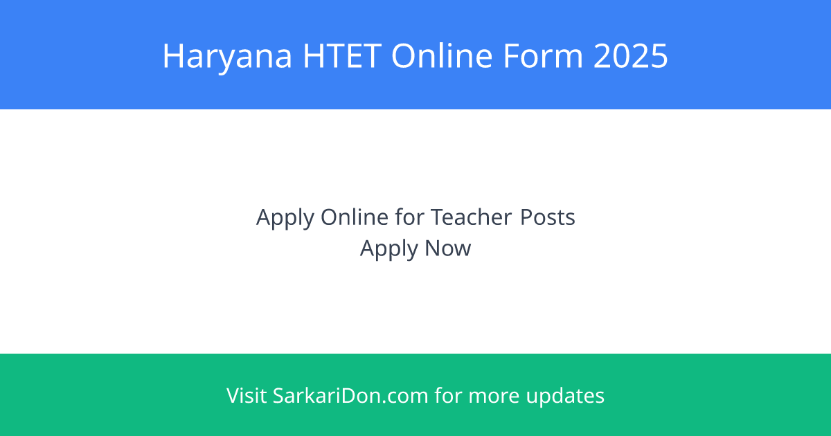 Haryana HTET Online Form 2025: Apply for PRT, TGT, PGT Teacher Posts