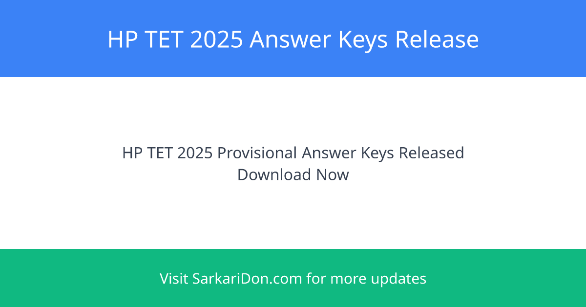 HP TET 2025 Provisional Answer Keys Released - Direct Download Link and Objection Procedure