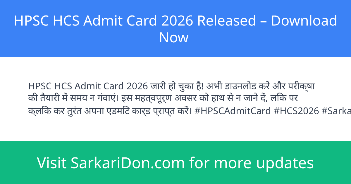 The Haryana Public Service Commission (HPSC) has officially released the admit card for the HPSC HCS Preliminary Exam 2026. Candidates who have successfully applied are now able to download their admit cards to appear in the examination scheduled for April 26, 2026. The hall ticket is a mandatory document for entry into the exam center, containing crucial details like exam city and candidate information.