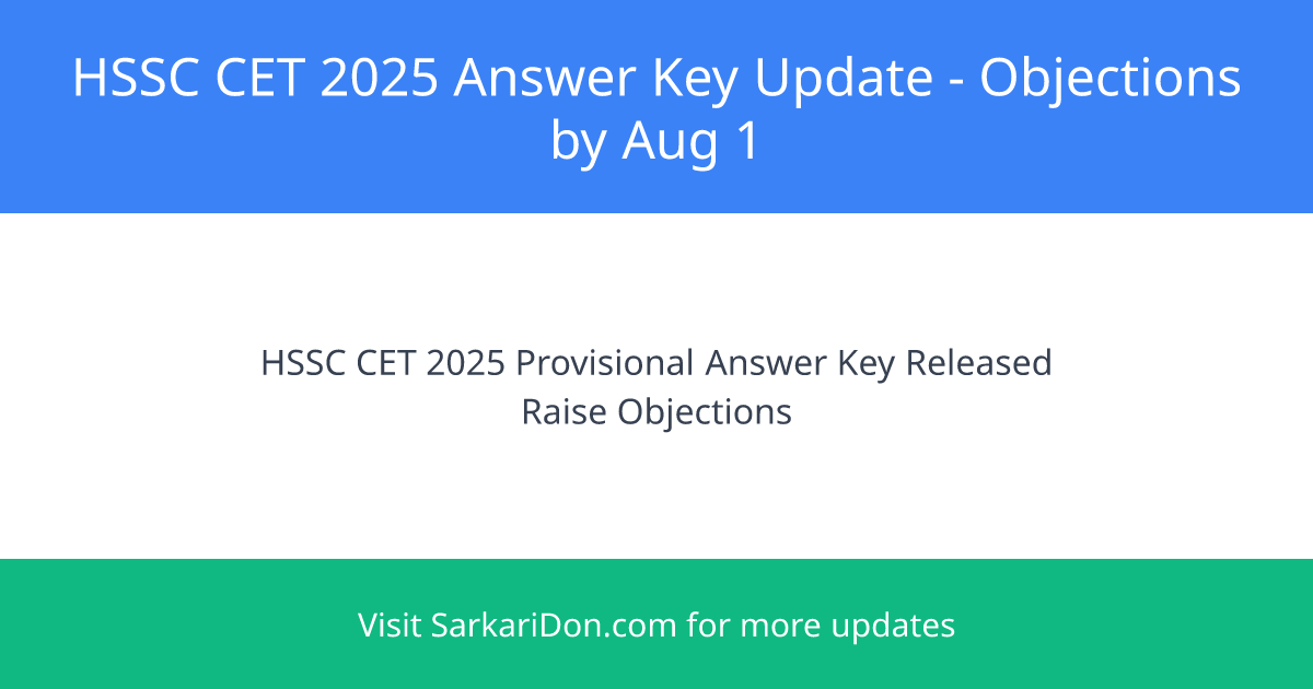 HSSC CET 2025 Provisional Answer Key Released | Raise Objections by 01-08-2025 | Sarkari Result Update