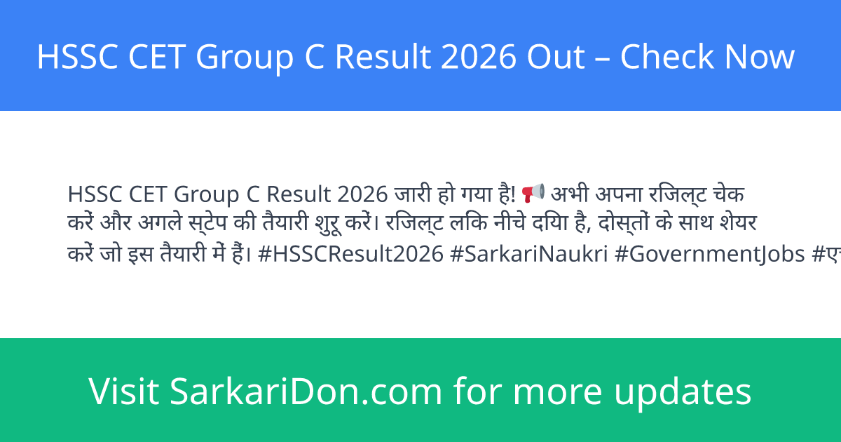 - Find the link for HSSC CET Group C Result 2026 and click on it.