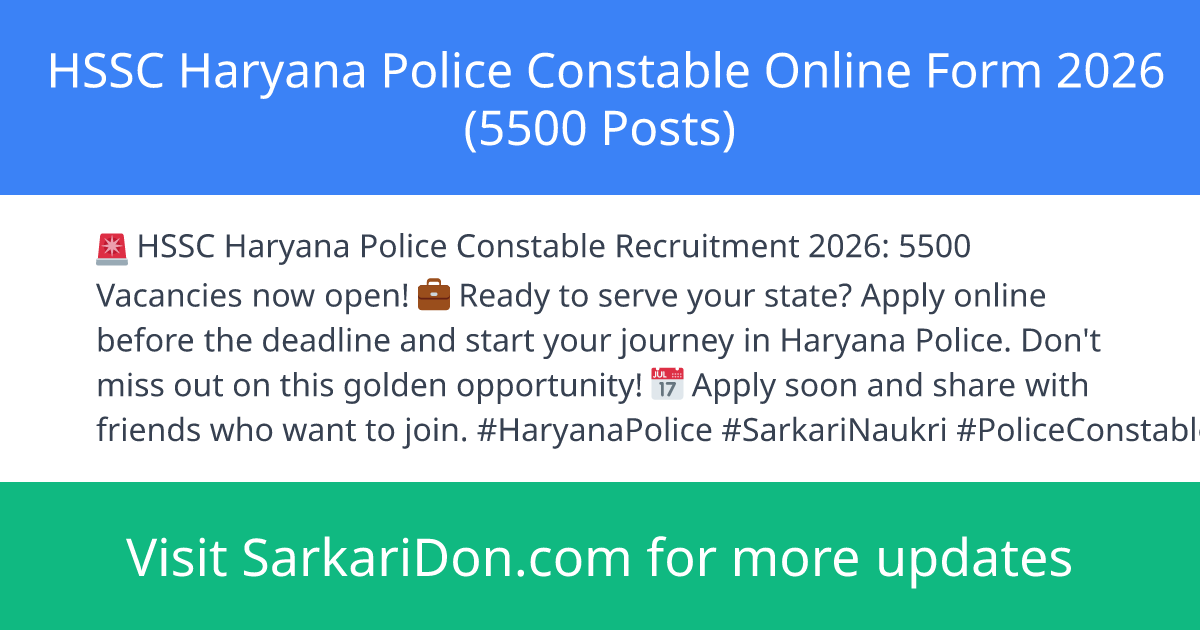 Haryana Staff Selection Commission (HSSC) has released the HSSC Haryana Police Constable Recruitment 2026 for a total of 5500 posts. This recruitment includes Male Constable (General Duty), Female Constable, and Government Railway Police (GRP) Constable vacancies. Candidates must meet the eligibility criteria and apply online through the official HSSC portal.