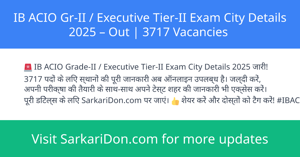 IB ACIO Gr-II / Executive Tier-II Exam City Details 2025 โ Out | 3717 Vacancies
