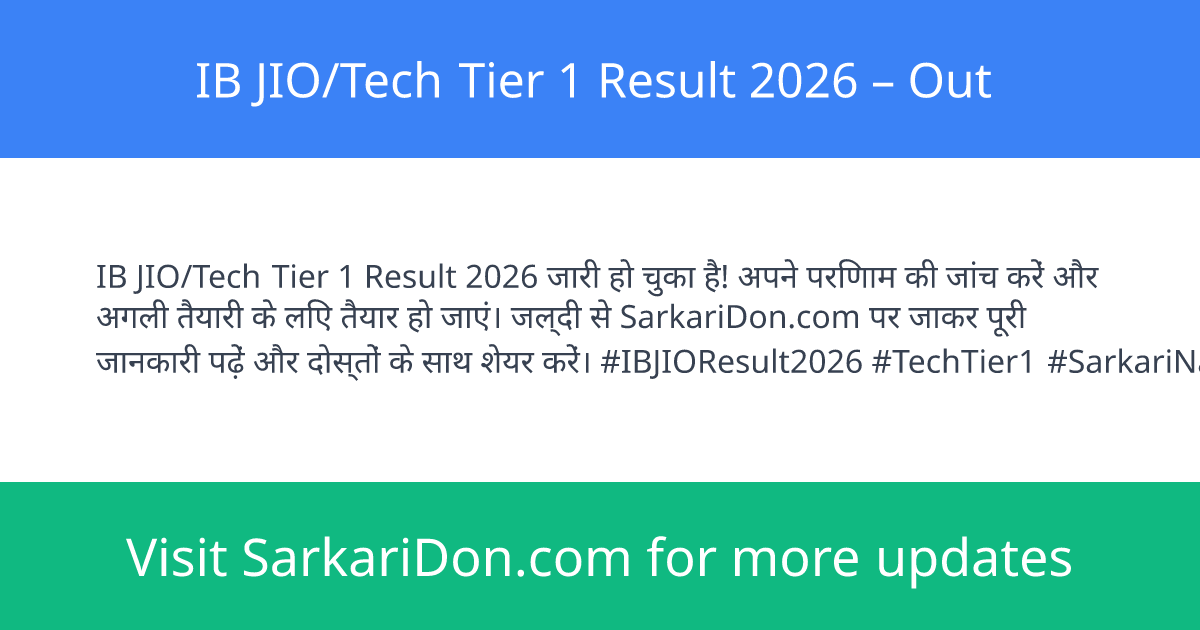 | Official Result Link | https://sarkariresult.com.cm/ib-jio-tech-tier-1-result-2026/ |
