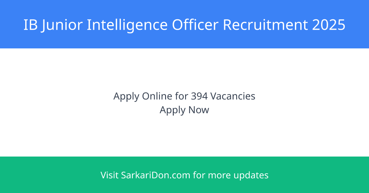 IB Junior Intelligence Officer Recruitment 2025: Apply for 394 Vacancies!