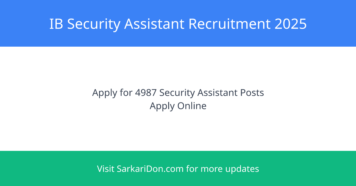 IB Recruitment 2025: Apply Now for 4987 Security Assistant/Executive Positions