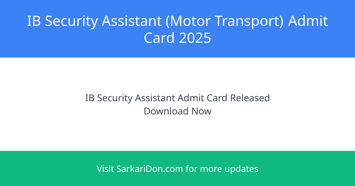 - When was the IB Security Assistant (Motor Transport) Admit Card 2025 released?