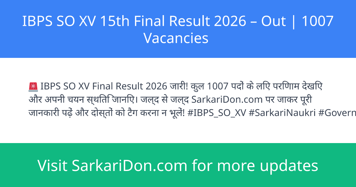 IBPS SO XV 15th Final Result 2026 β Out | 1007 Vacancies