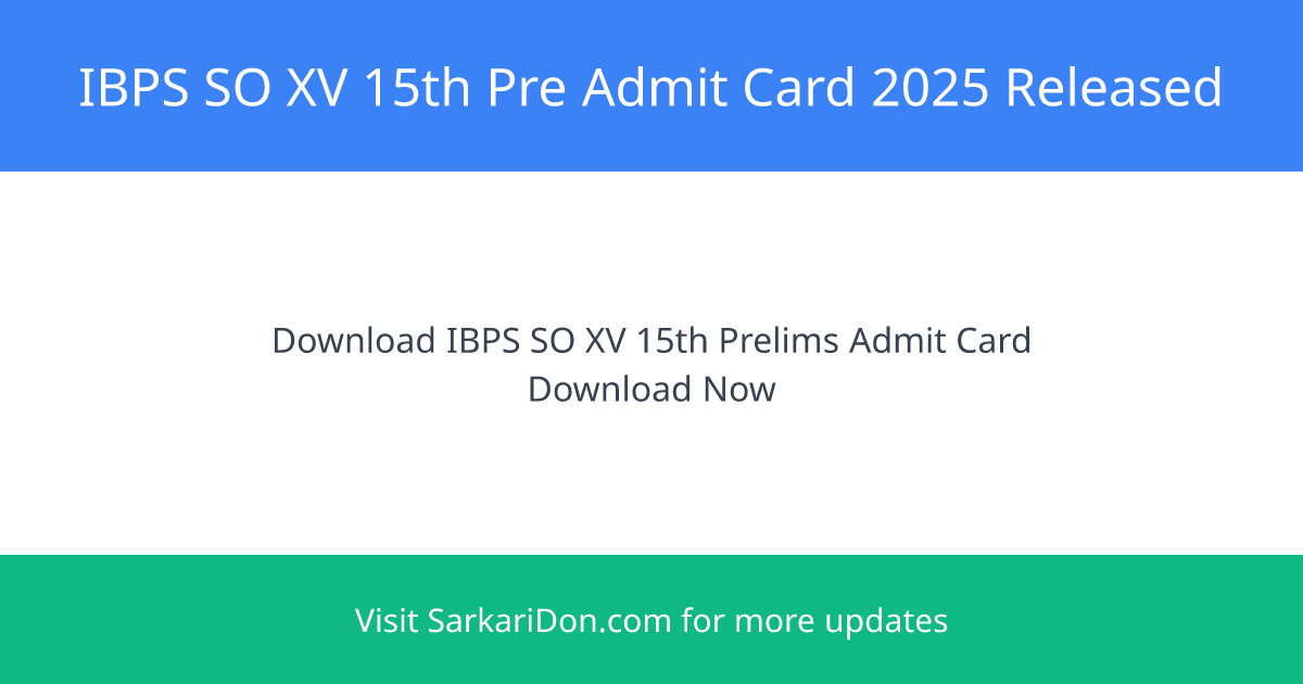 IBPS SO XV 15th Pre Admit Card 2025 Released: Download Now!