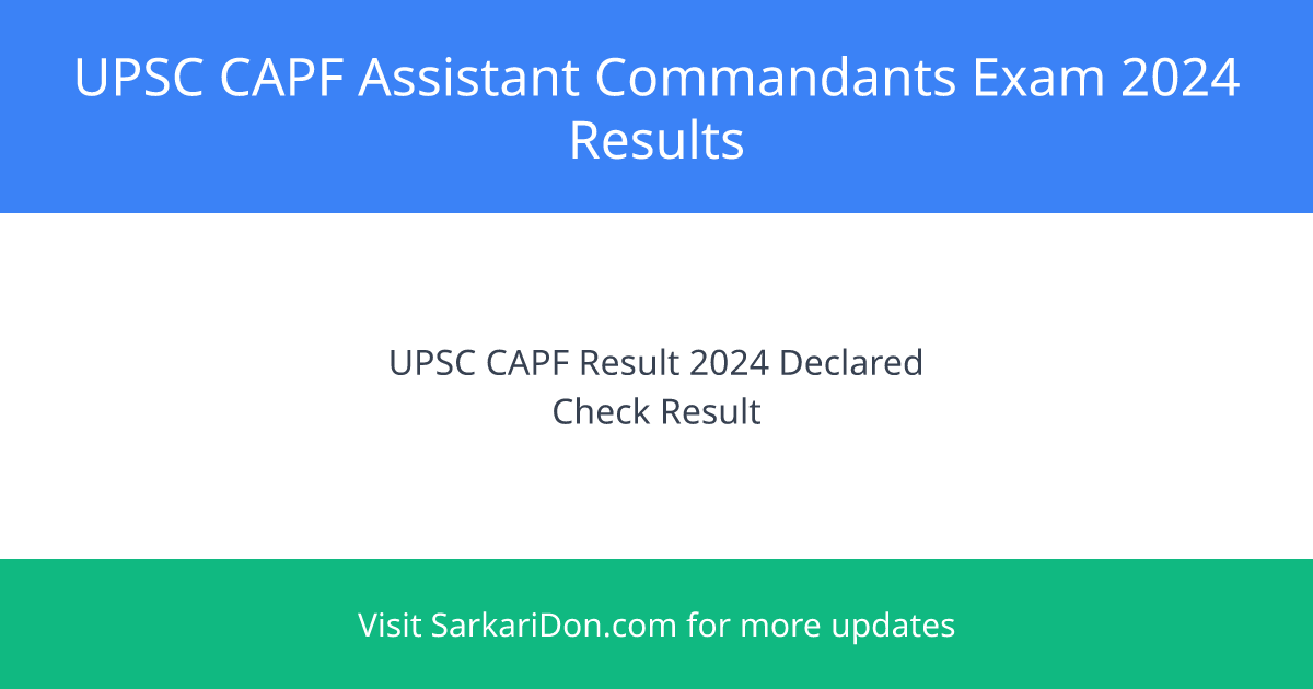 The Union Public Service Commission (UPSC) has announced the final results for the Central Armed Police Forces (Assistant Commandants) Examination, 2024. The results were officially declared on June 13, 2025, and are accessible on the UPSC website at www.upsc.gov.in.