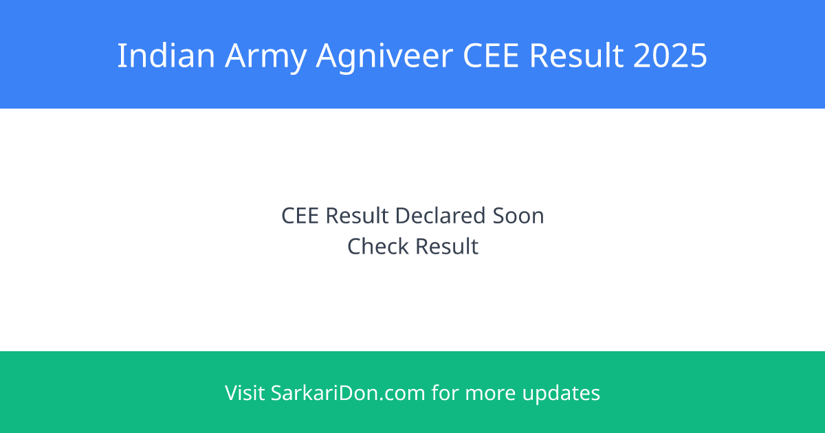 The Indian Army Agniveer Common Entrance Examination (CEE) 2025 result is anticipated to be declared between 24 and 30 July 2025. Candidates who appeared for the exam conducted from 30 June to 10 July 2025 are advised to check their results at the official website joinindianarmy.nic.in.