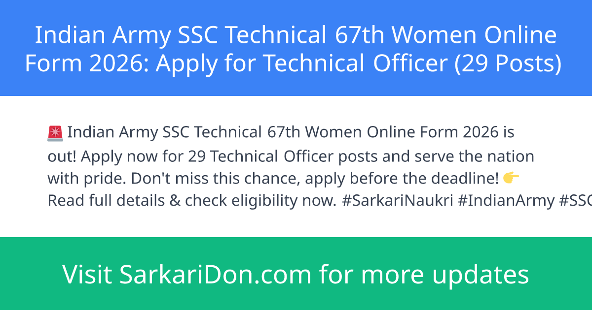 Indian Army SSC Technical 67th Women Online Form 2026: Apply for Technical Officer (29 Posts)