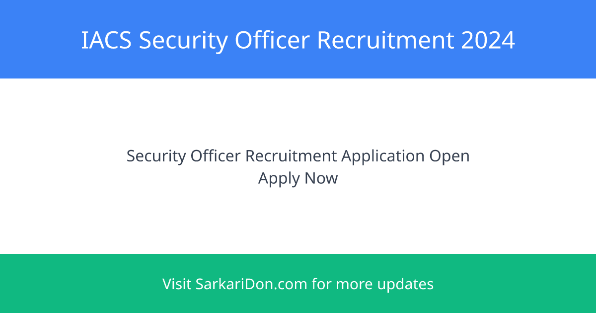 Applications are invited for the post of Security Officer at the Indian Association for the Cultivation of Science (IACS). This recruitment is for eligible candidates who meet the required qualifications and experience, as posted on the official IACS website.