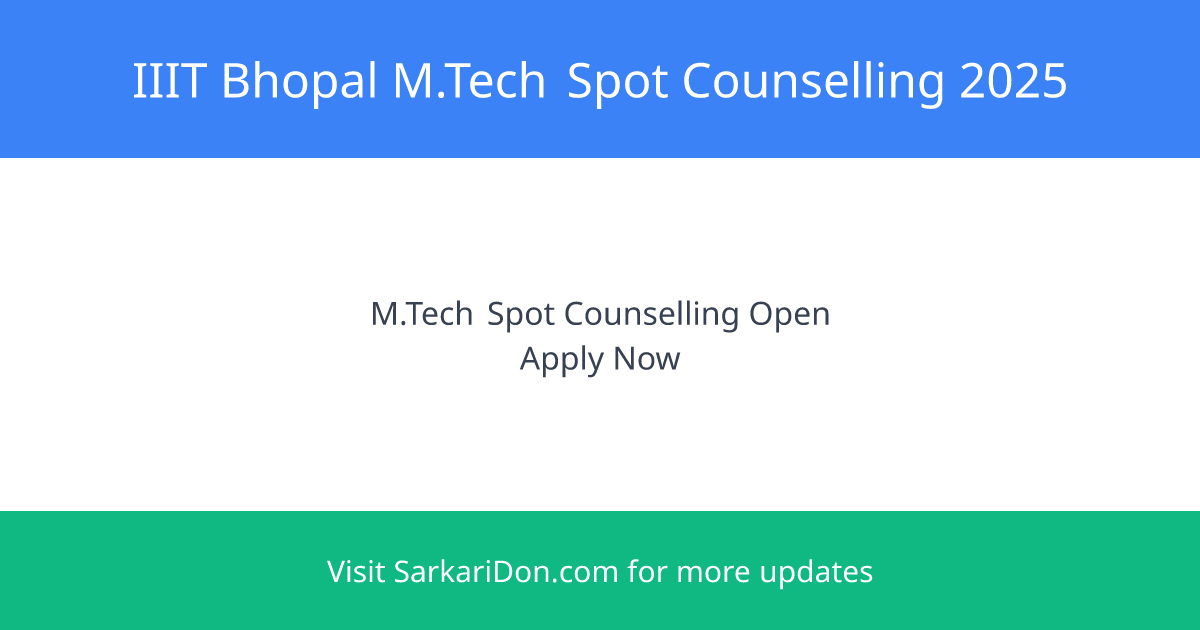 Indian Institute of Information Technology Bhopal - M.Tech Program Admission 2025: Spot Counselling Now Open!