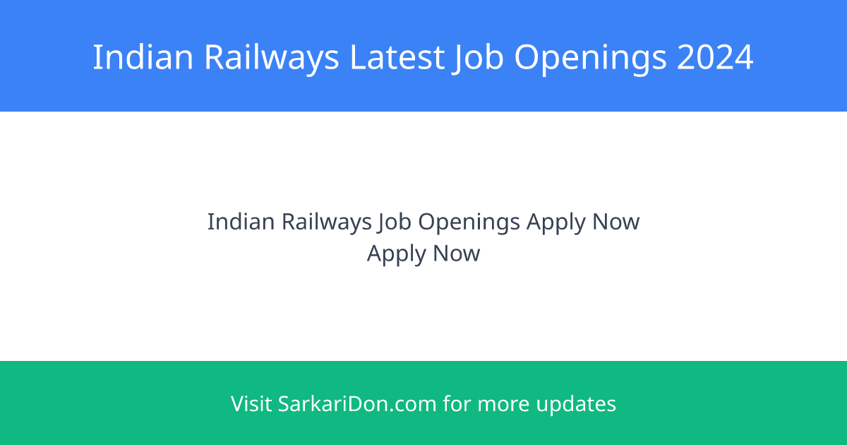 Indian Railways Latest Job Openings - Apply Now!