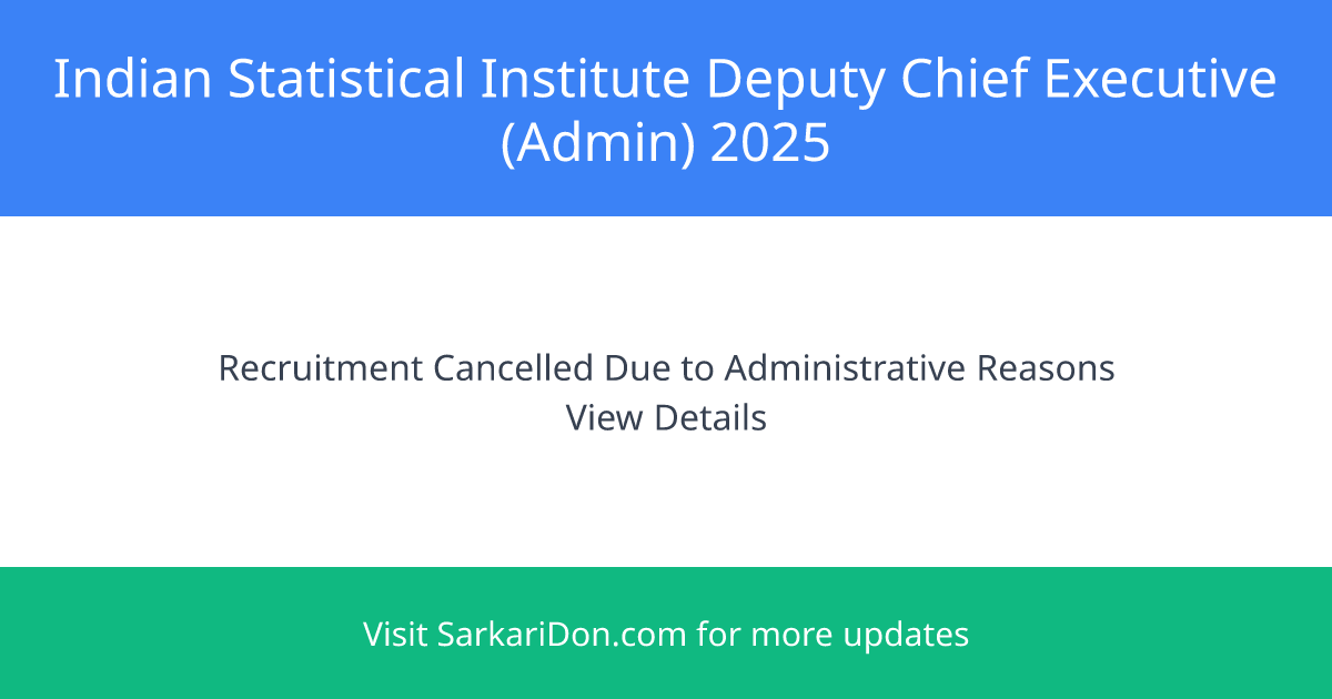 The Indian Statistical Institute (ISI), located at 203, B. T. Road, Kolkata-700108, has issued a notice regarding the cancellation of the advertisement for the position of Deputy Chief Executive (Admin). This cancellation notice follows a prior advertisement dated 02.08.2025 for filling one post on a deputation basis in ISI, Bangalore Centre.