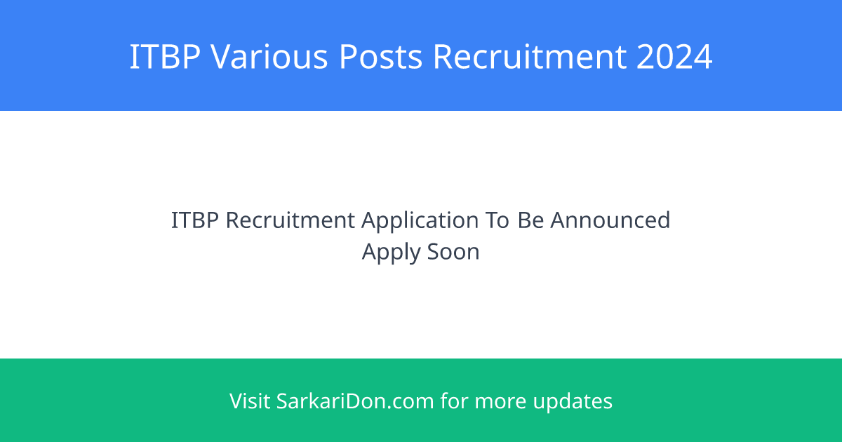 Indo-Tibetan Border Police Force Various Posts Recruitment 2024