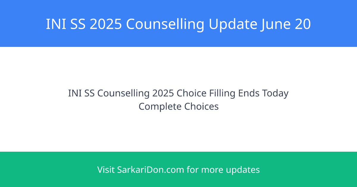 INI SS 2025 Counselling Update: Choice Filling Ends Today; Seat Allotment on June 23