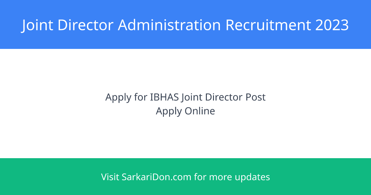 The Institute of Human Behaviour & Allied Sciences (IBHAS) invites applications for the position of Joint Director (Administration) on a deputation basis. Eligible and interested candidates may apply in the prescribed proforma.