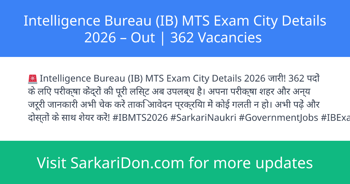 Intelligence Bureau (IB) MTS Exam City Details 2026 β Out | 362 Vacancies