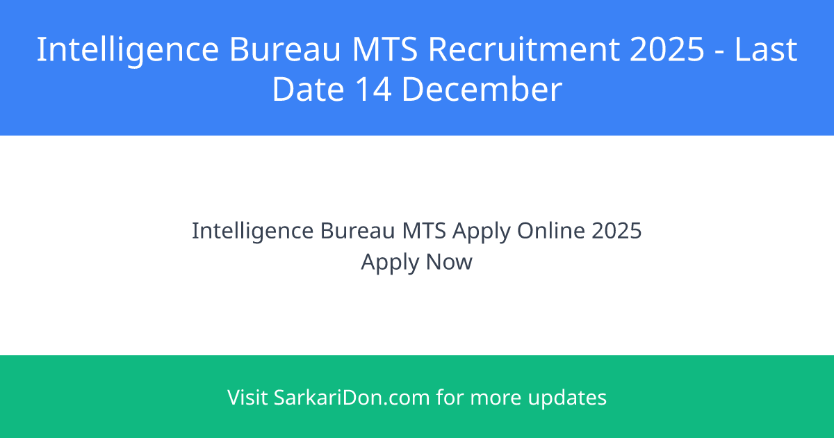Urgent: The application deadline for Intelligence Bureau (IB) Multi Tasking Staff posts is 14 December 2025. Do not miss this chance for a prestigious government job. Apply immediately!