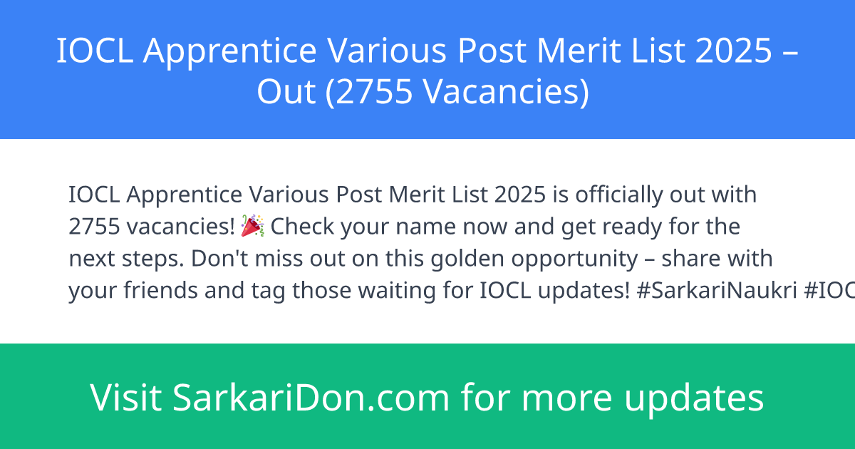 IOCL Apprentice Various Post Merit List 2025 β Out (2755 Vacancies)