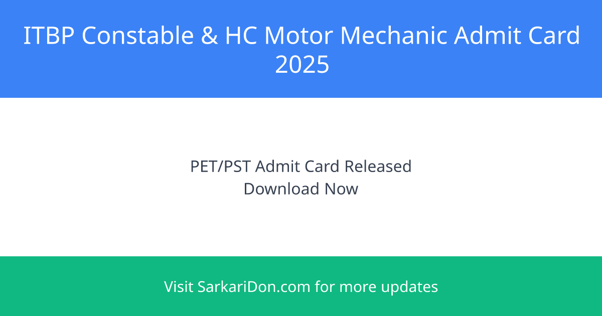 - Has the ITBP Constable & HC (Motor Mechanic) PET/PST Admit Card 2025 been released?