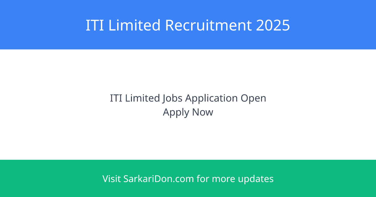 ITI Limited Recruitment for Various Positions - Apply Now!