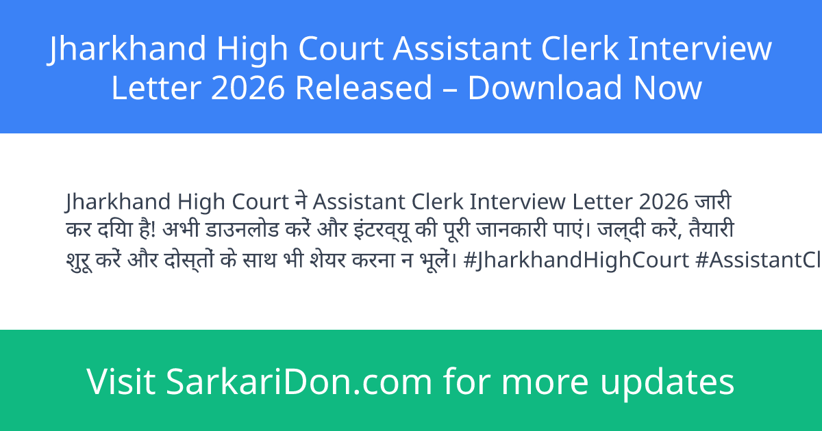 Jharkhand High Court Assistant Clerk Interview Letter 2026 Released โ Download Now