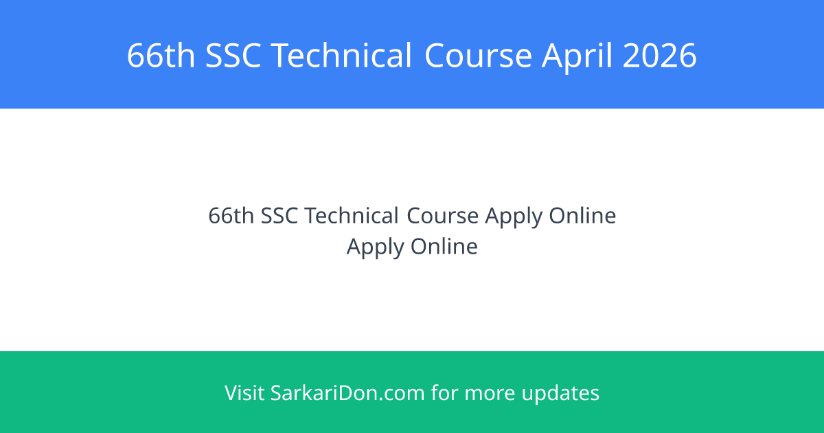 Join the Indian Army: 66th SSC Technical April 2026 Online Form