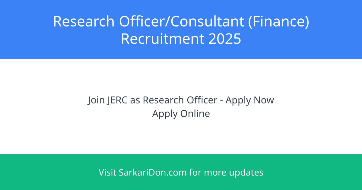 The Joint Electricity Regulatory Commission is inviting applications for the position of Research Officer/Consultant (Finance) on a short-term contractual basis. This is a fantastic opportunity for eligible candidates looking to further their careers in government jobs.