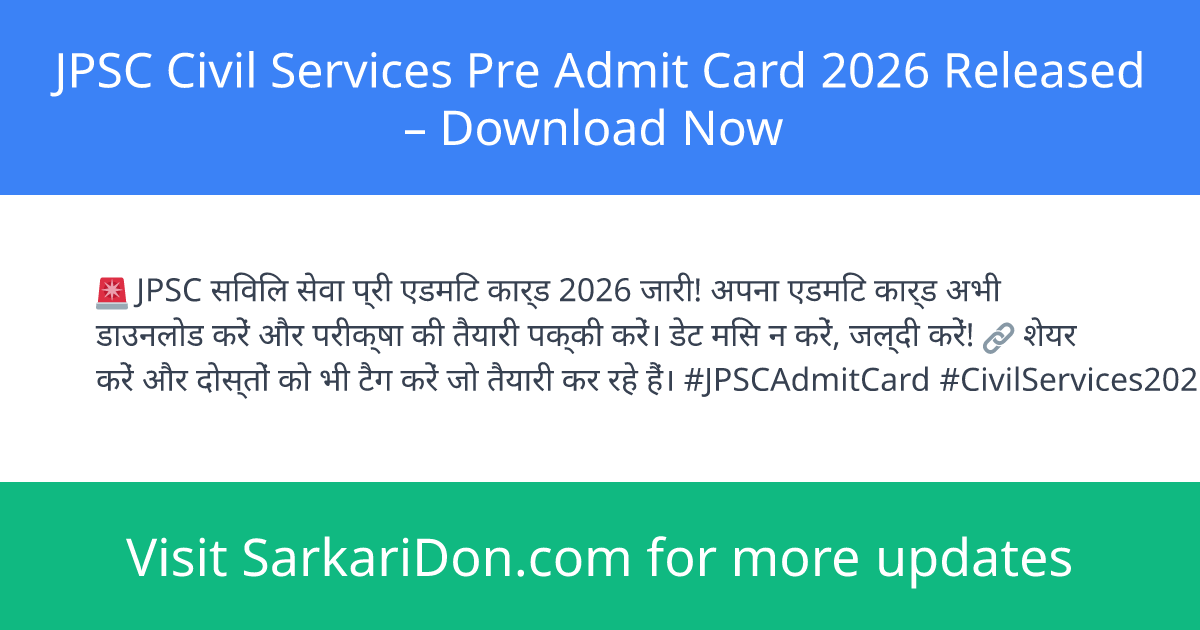 JPSC Civil Services Pre Admit Card 2026 Released โ Download Now