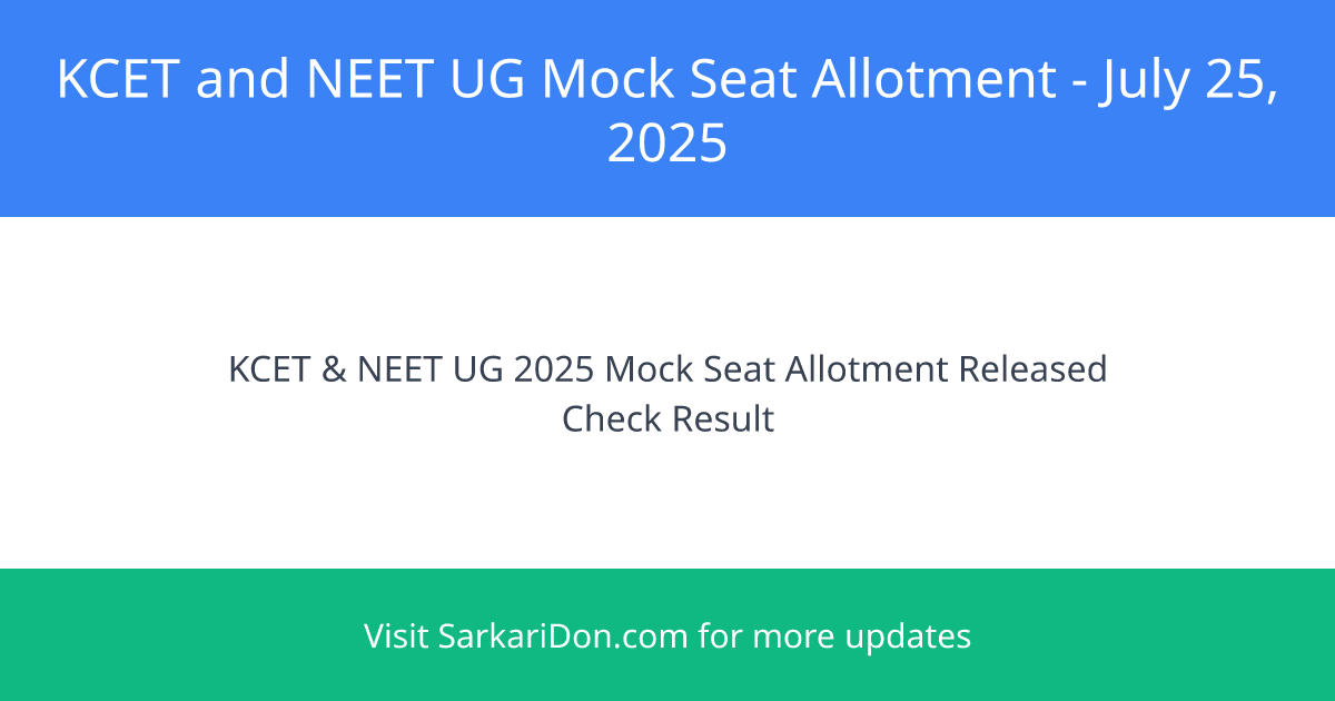 The Karnataka Examinations Authority (KEA) has announced the KCET and NEET UG 2025 Mock Seat Allotment Results on July 25, 2025. This crucial step allows candidates to preview their potential seat allocations based on their submitted preferences and rank. The results are available on the KEA's official website, where candidates can log in with their Karnataka CET number to access their mock allotment status.