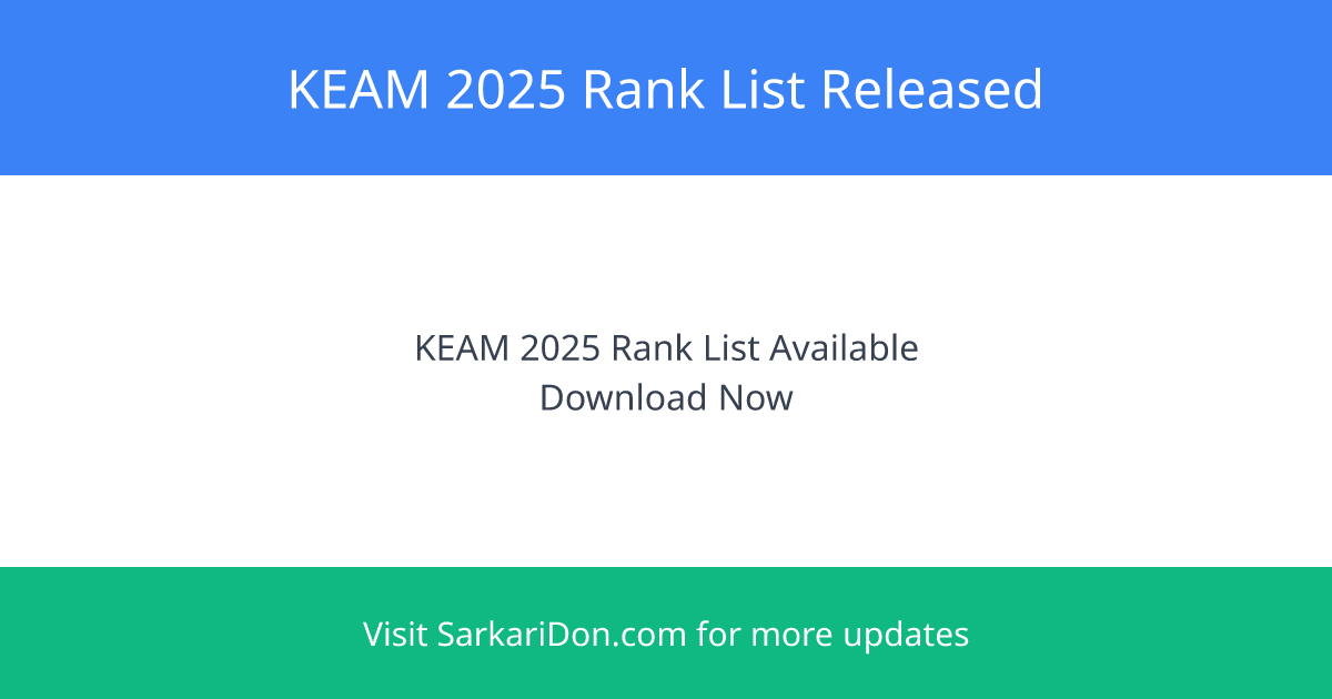 The KEAM 2025 rank list has been officially released by the Commissioner for Entrance Examinations (CEE) Kerala on July 1, 2025. This rank list is a key step in the admissions process for professional courses such as engineering and pharmacy in Kerala. The KEAM exams were conducted from April 23 to April 29, 2025.