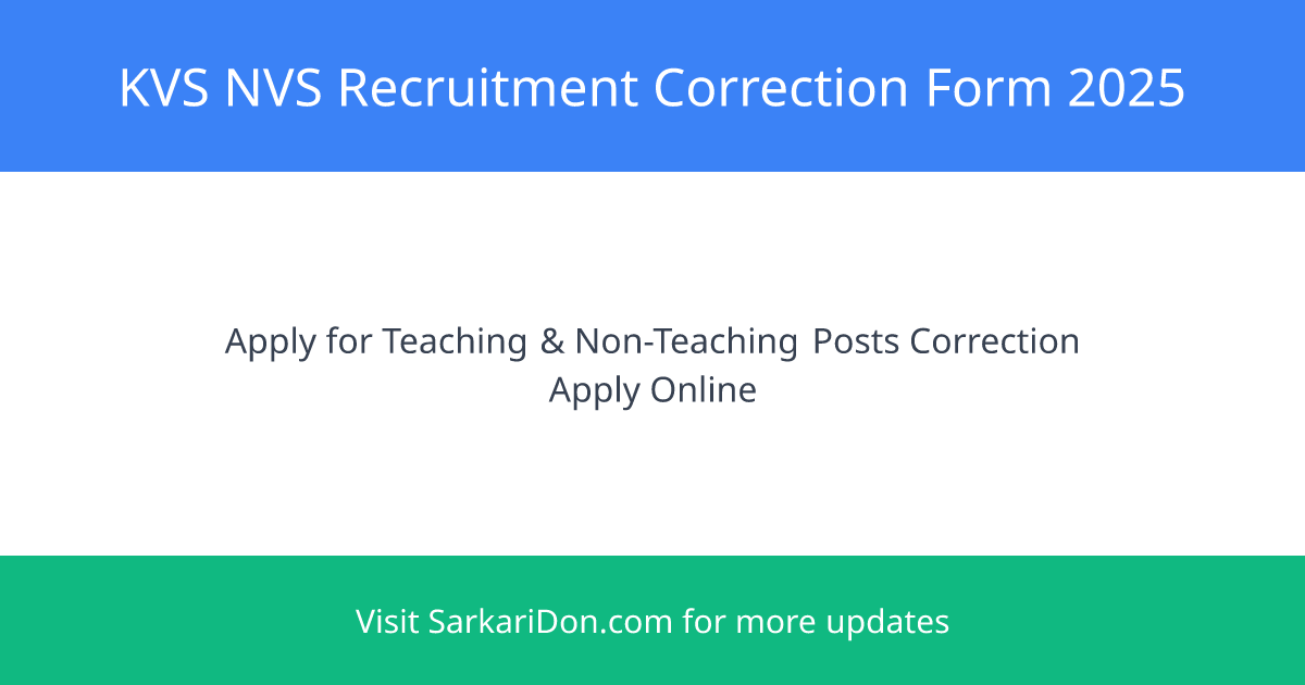 KVS NVS Teaching & Non-Teaching Correction Form 2025 โ Apply Now for 15,762 Vacancies!