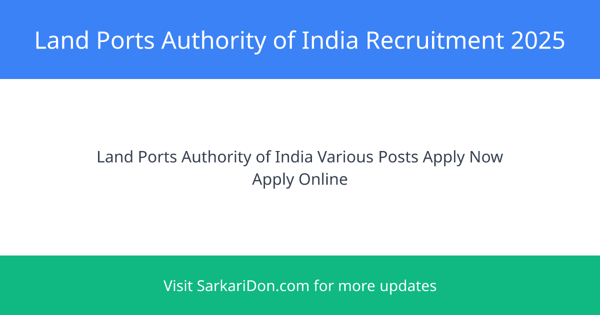 Land Ports Authority of India: 9 Various Positions Available for Recruitment 2025