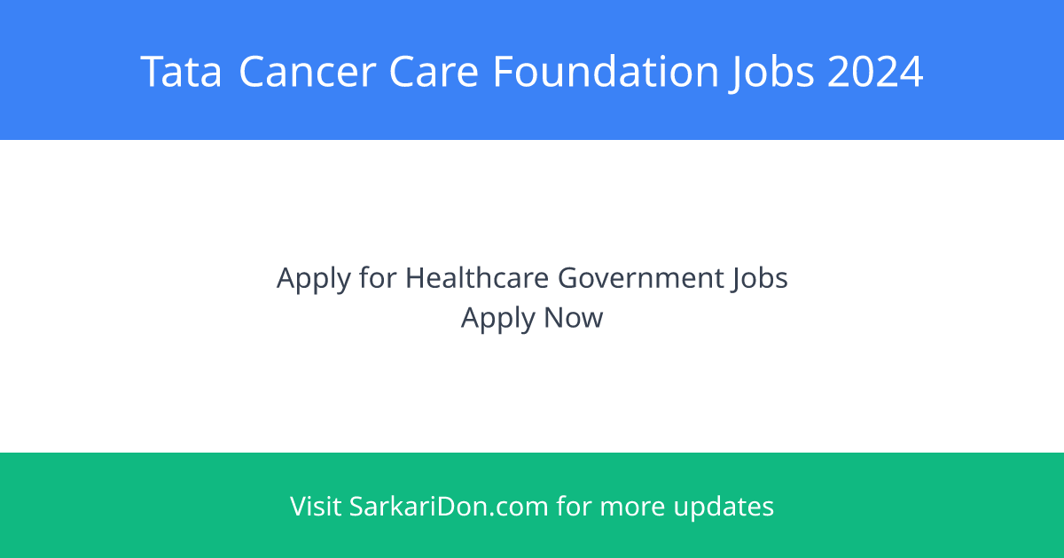 Join the Tata Cancer Care Foundation and contribute to life-saving medical services. This is a fantastic opportunity for those seeking a fulfilling career in healthcare. Don't miss out on your chance for a sarkari naukri!