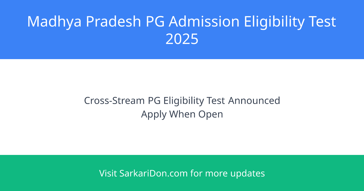 The Madhya Pradesh Department of Higher Education (DHE) has introduced a new state-level eligibility test for cross-stream postgraduate (PG) admissions starting from the 2025 academic session. This test is aimed at students wishing to switch their subject stream when moving from undergraduate to postgraduate courses, especially from BA or BCom backgrounds to MSc or other science PG courses.