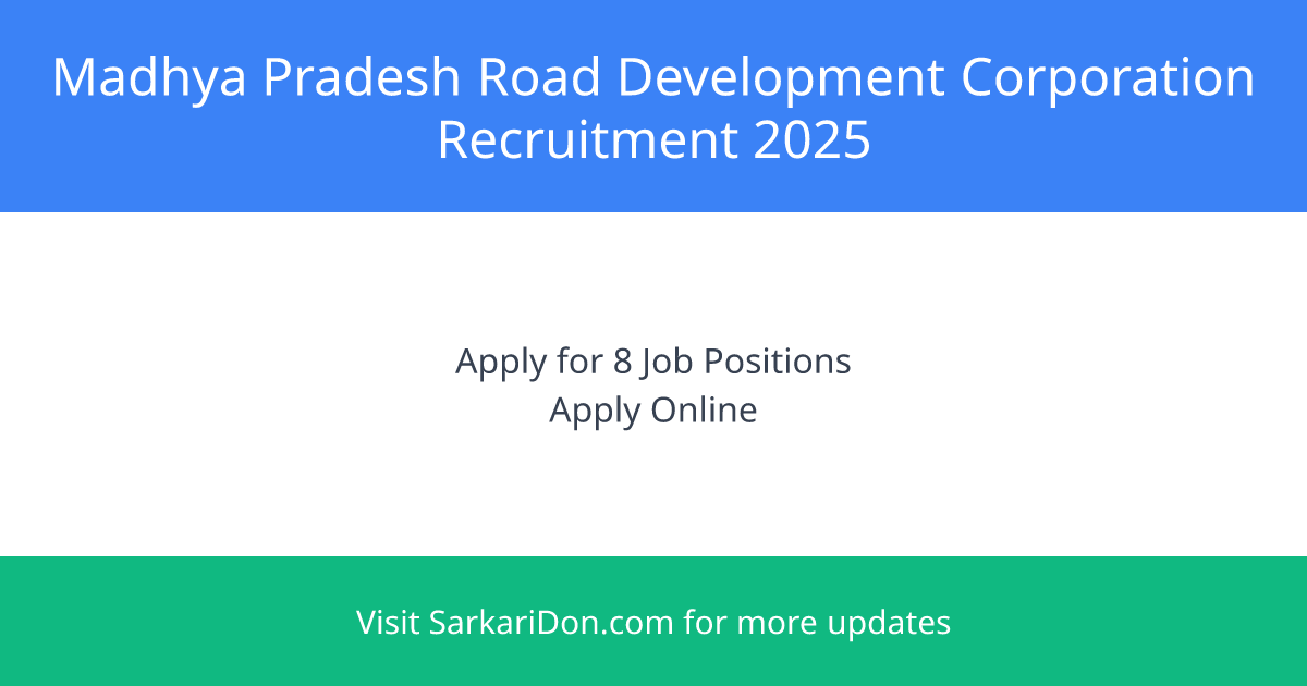 Madhya Pradesh Road Development Corporation Recruitment: Apply for 8 Exciting Job Positions!